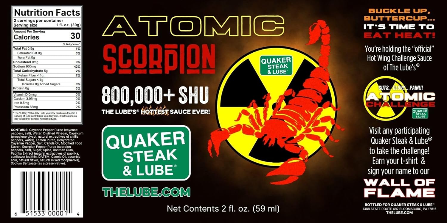Made with Scorpion Pepper Venom. The Lube’s Hottest Sauce Ever! 800,000+SHU (Scoville Heat Units)